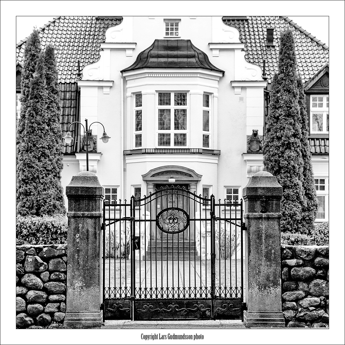 Här bakom grinden fanns på slutet av 1960-talet ett discotek i källarvåningen. Jag var där enbart en gång, för detta är inget för mig. Trollsjögatan 5B är adressen idag. En pampig patriciervilla.